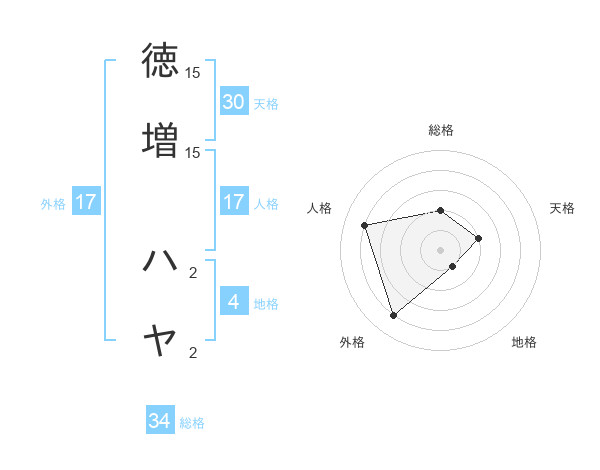 徳増 ハヤさんを姓名の画数から五運を鑑定