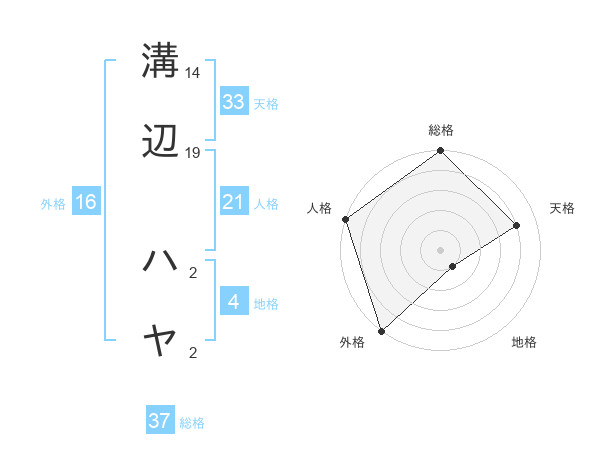 溝辺 ハヤさんの総格は37画の5点!