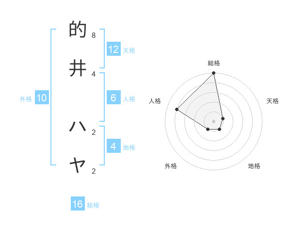 的井 ハヤさんを姓名の画数から五運を鑑定