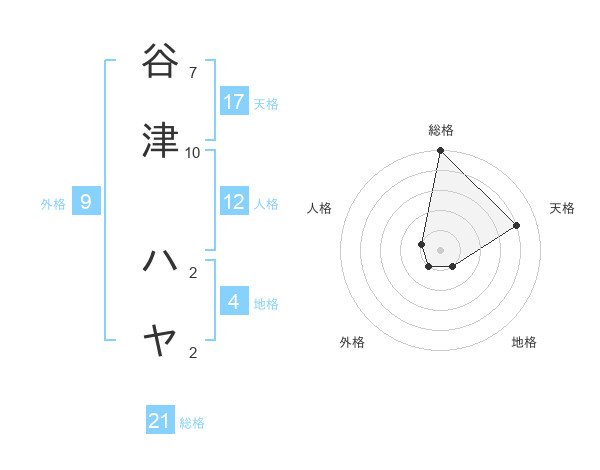 谷津 ハヤさんの総格は21画の5点