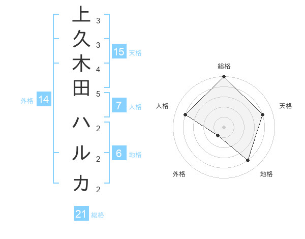 上久木田 ハルカさんを姓名の画数から五運を鑑定