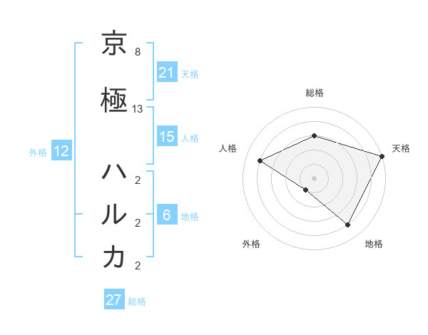 京極 ハルカさんを姓名の画数から五運を鑑定