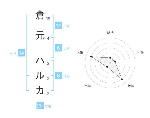 倉元 ハルカさんの総格は20画の1点