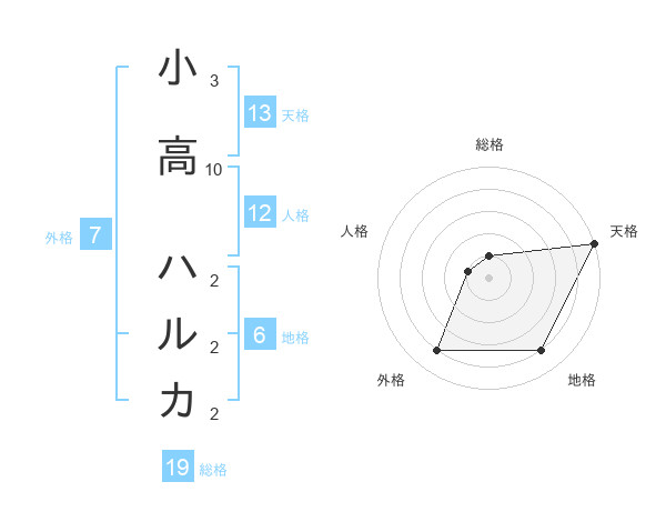 小高 ハルカさんの天格は13画の5点!