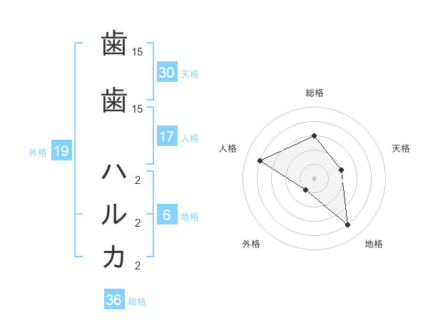 歯歯 ハルカさんを姓名の画数から五運を鑑定