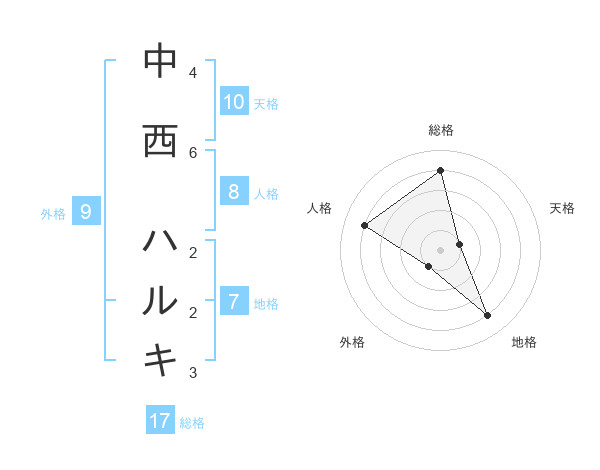 中西 ハルキさんの総格は17画の4点!