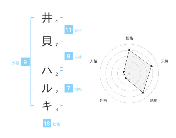 井貝 ハルキさんを姓名の画数から五運を鑑定