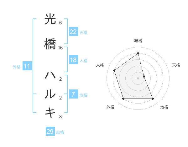 光橋 ハルキさんの総格は29画の4点!