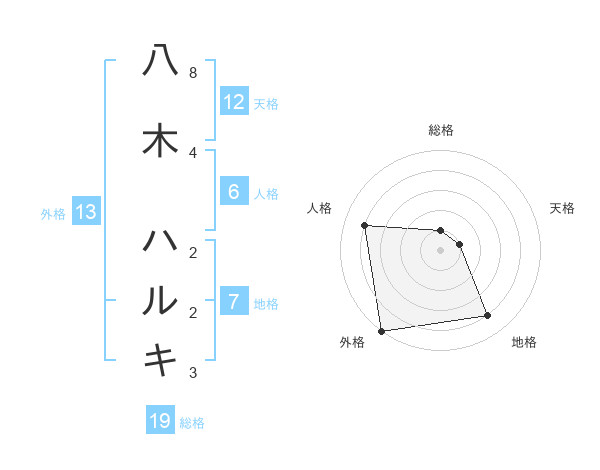 八木 ハルキさんを姓名の画数から五運を鑑定