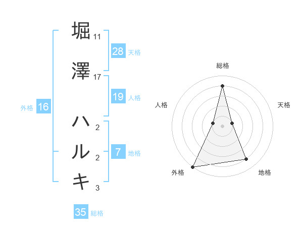 堀澤 ハルキさんの外格は16画の5点!