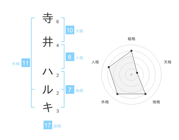 寺井 ハルキさんの総格は17画の4点!