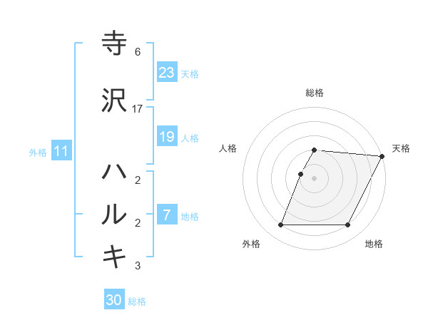 寺沢 ハルキさんの天格は23画の5点!