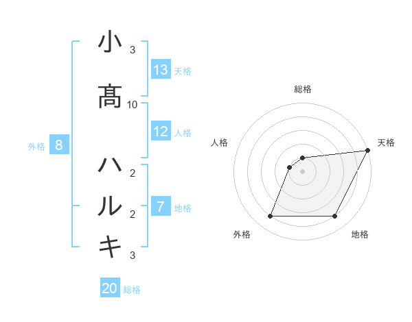 小髙 ハルキさんを姓名の画数から五運を鑑定