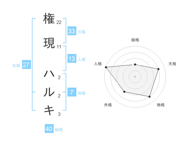 権現 ハルキさんの天格は33画の4点!