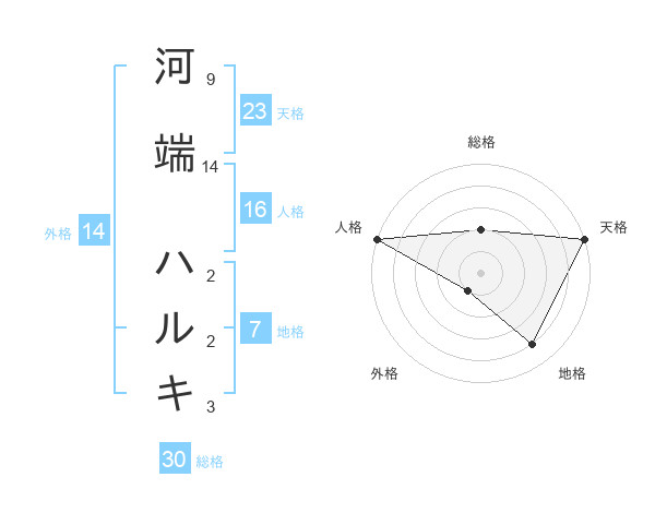 河端 ハルキさんを姓名の画数から五運を鑑定