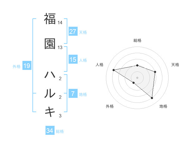 福園 ハルキさんを姓名の画数から五運を鑑定