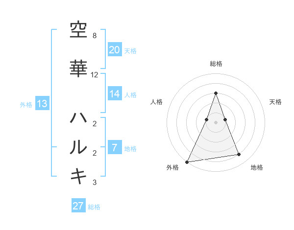 空華 ハルキさんを姓名の画数から五運を鑑定