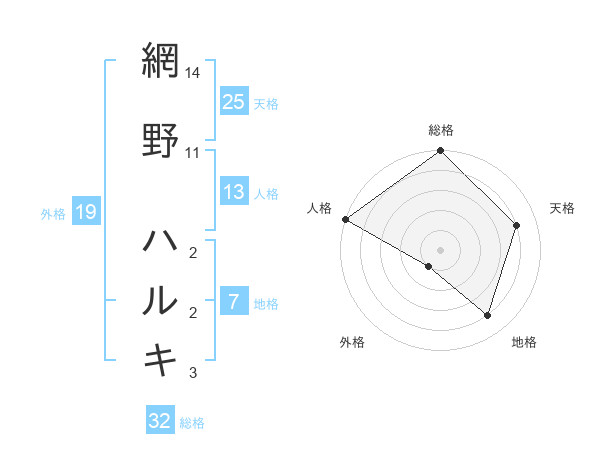 網野 ハルキさんを姓名の画数から五運を鑑定