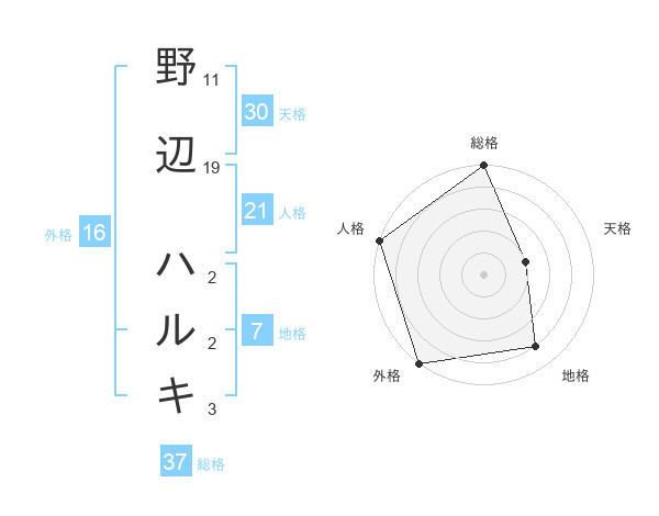 野辺 ハルキさんを姓名の画数から五運を鑑定