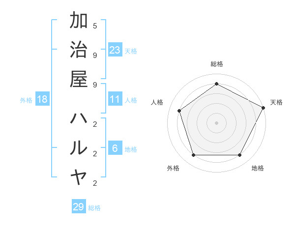 加治屋 ハルヤさんを姓名の画数から五運を鑑定