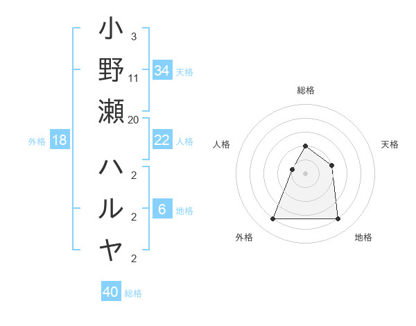 小野瀬 ハルヤさんを姓名の画数から五運を鑑定