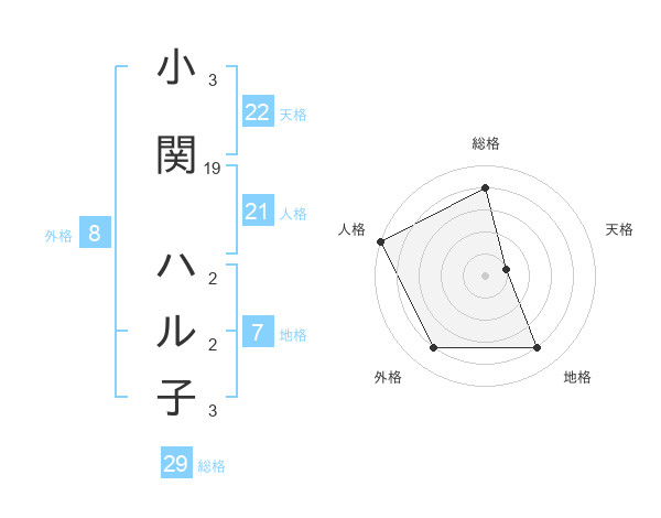小関 ハル子さんを姓名の画数から五運を鑑定