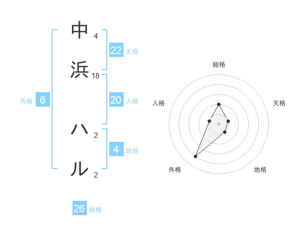 中浜 ハルさんを姓名の画数から五運を鑑定