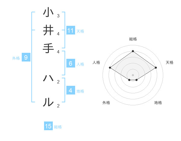 小井手 ハルさんの総格は15画の4点!