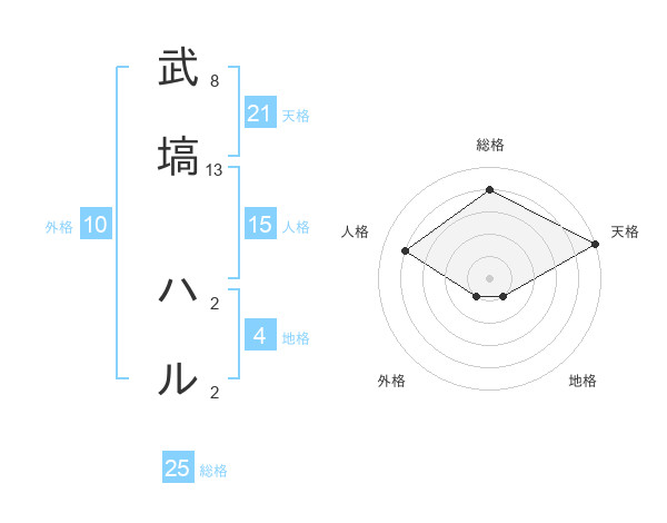 武塙 ハルさんを姓名の画数から五運を鑑定