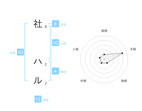社 ハルさんの総格は12画の1点!