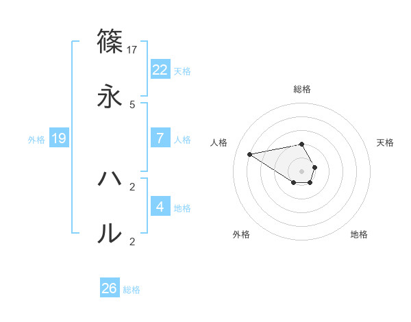 篠永 ハルさんを姓名の画数から五運を鑑定