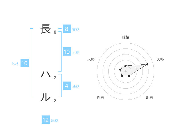 長 ハルさんの総格は12画の1点!