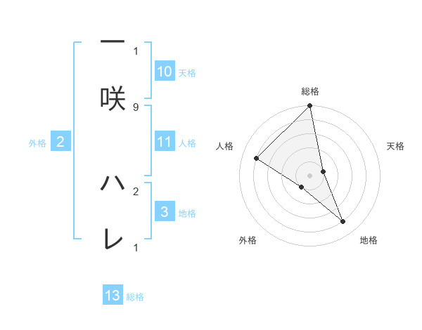 一咲 ハレさんを姓名の画数から五運を鑑定