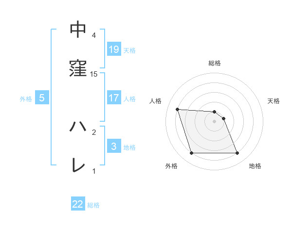 中窪 ハレさんを姓名の画数から五運を鑑定