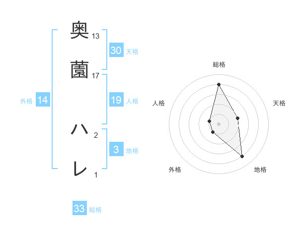 奥薗 ハレさんを姓名の画数から五運を鑑定