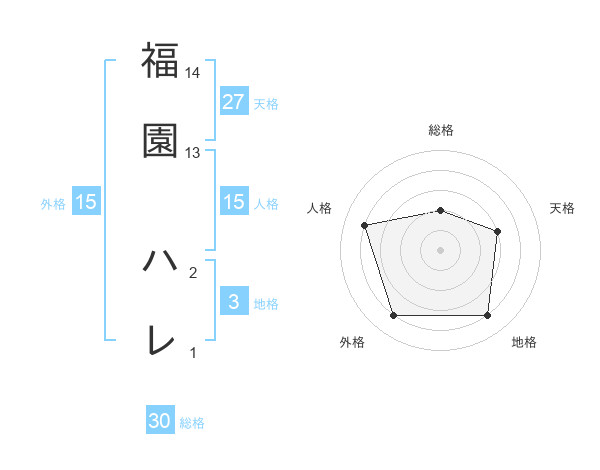 福園 ハレさんの総格は30画の2点!