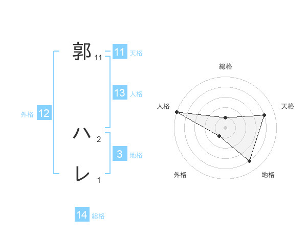 郭 ハレさんの天格は11画の4点!