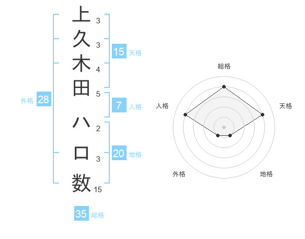 上久木田 ハロ数さんを姓名の画数から五運を鑑定