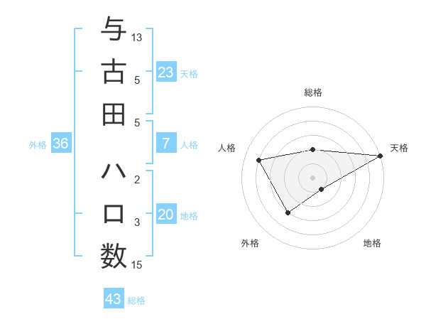 与古田 ハロ数さんの天格は23画の5点!