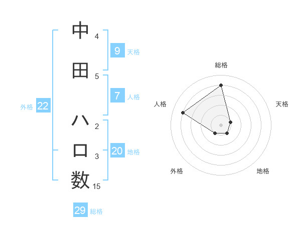 中田 ハロ数さんの総格は29画の4点!