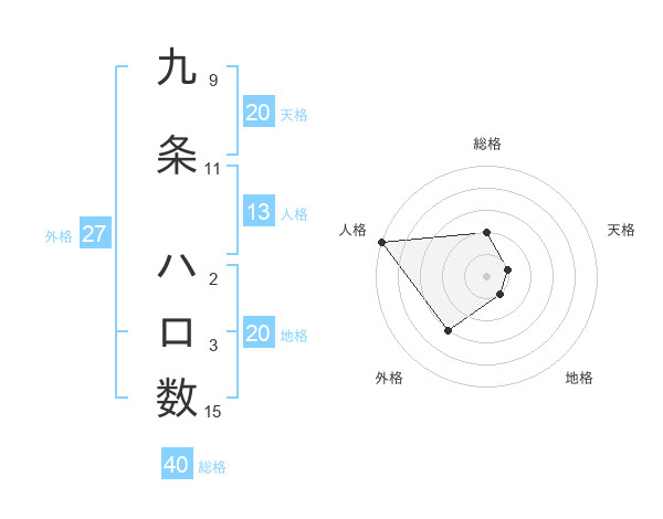 九条 ハロ数さんを姓名の画数から五運を鑑定
