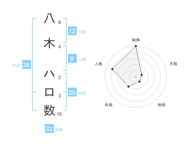八木 ハロ数さんを姓名の画数から五運を鑑定