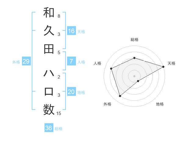 和久田 ハロ数さんの外格は29画の4点!