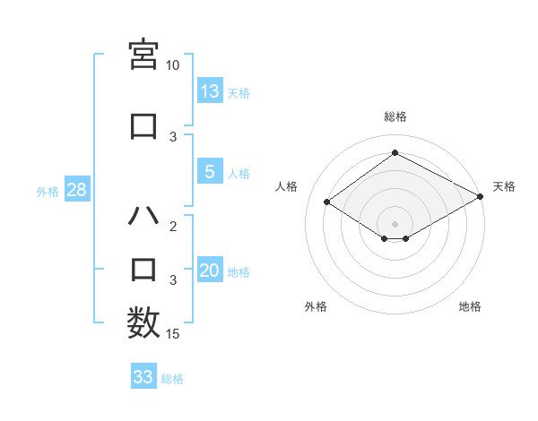 宮口 ハロ数さんを姓名の画数から五運を鑑定