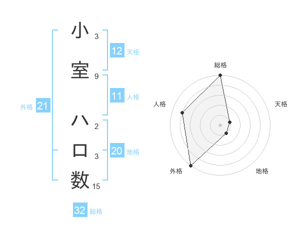 小室 ハロ数さんの地格は20画の1点!