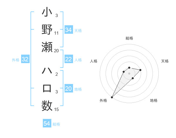 小野瀬 ハロ数さんを姓名の画数から五運を鑑定