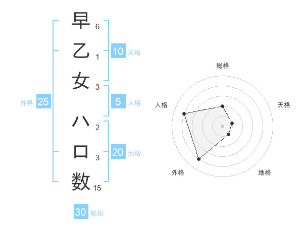 早乙女 ハロ数さんを姓名の画数から五運を鑑定