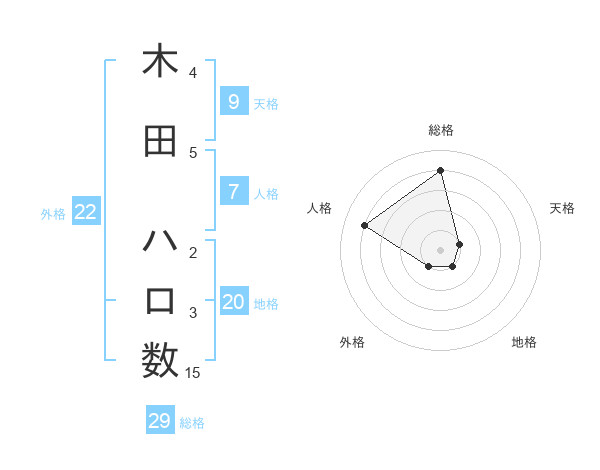 木田 ハロ数さんを姓名の画数から五運を鑑定