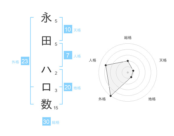 永田 ハロ数さんを姓名の画数から五運を鑑定