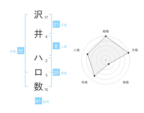 沢井 ハロ数さんを姓名の画数から五運を鑑定